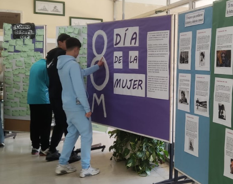 Fomentamos la igualdad entre hombres y mujeres en la educación con campañas y actividades a lo largo del curso: talleres, exposiciones, Día de la Mujer….